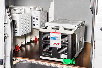 The containers have been connected to the vehicle battery and, once at destination, connected to main power.